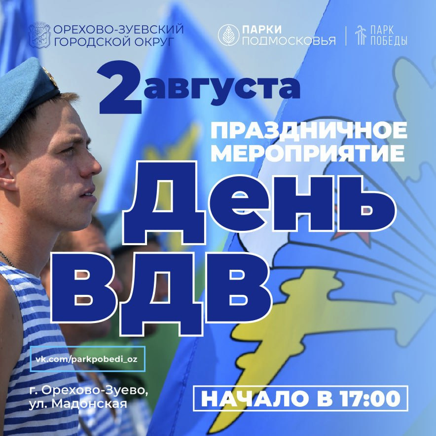 Торжественный митинг и праздничное мероприятие проведут в городе Орехово-Зуево в честь Дня Воздушно-десантных войск.