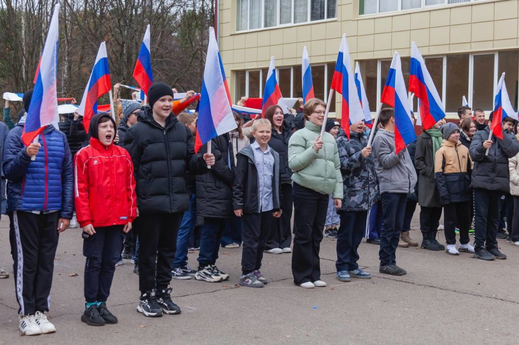 Представители «Движения Первых» в городском округе Кашира Ангелина Фетисова и Светлана Кузнецова собрали своих активистов для проведения флешмоба, посвященного Дню народного единства. В нем приняли участие ученики школ округа. Мальчишки и девчонки выстроились в ряды, держа в руках флаги, и составили фразу «Мы вместе!».
