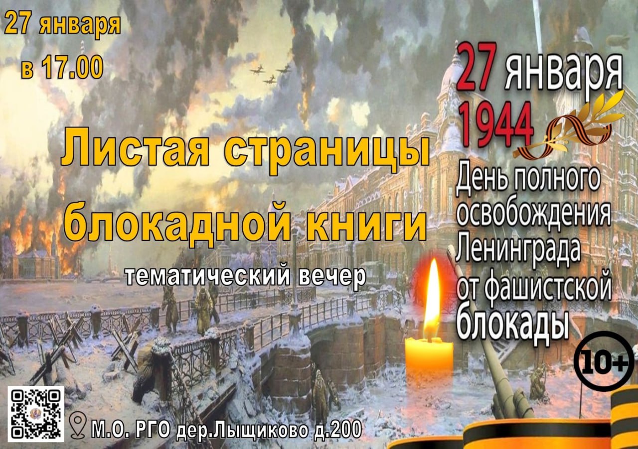27 января в Лыщиковском сельском доме культуры Рузского городского округа состоится тематический вечер "Листая страницы блокадной книги".