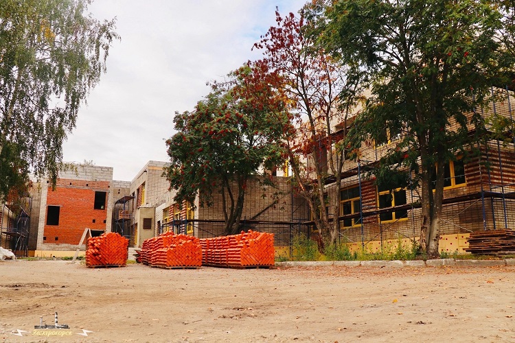 Также, продолжается устройство цоколя, отмостки, полов и входных групп, укладка кирпичных стен, монтаж строительных лесов, стен и перегородок. Приступили к установке окон, монтажу систем ХВС, ГВС и канализации.