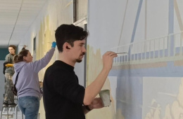Просмотров: 2 Художник Алексей Шилов завершил роспись стен лобненского лицея.
