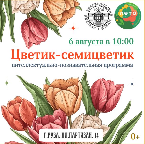 Детская интеллектуально-познавательная программа «Цветик-семицветик» пройдет в Рузском краеведческом музее 6 августа. Это событие обещает стать увлекательным приключением для детей, которые смогут погрузиться в мир природы и узнать о важности сохранения окружающей среды.