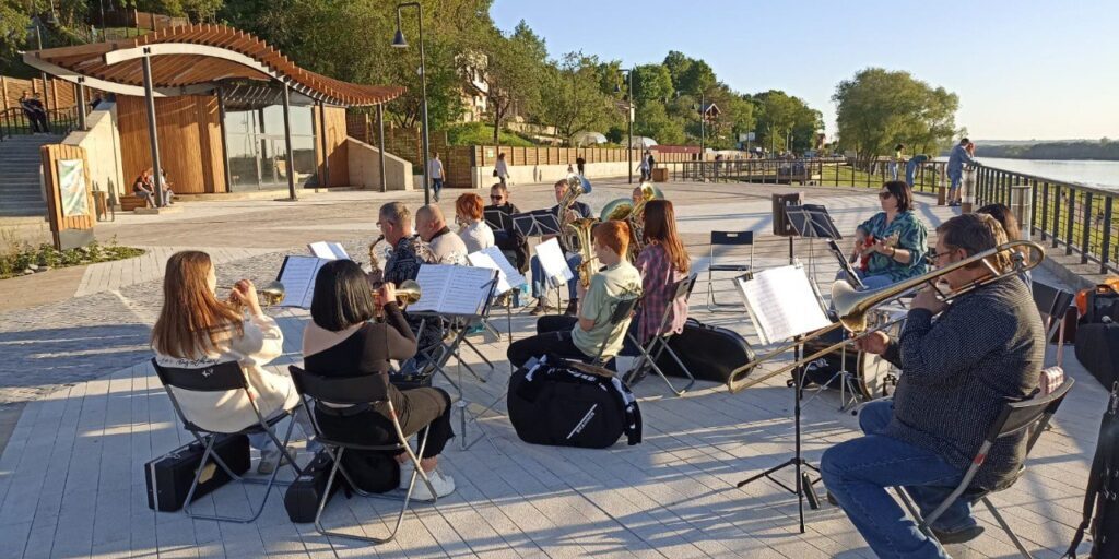 Во второй половине мая открылся тёплый сезон на Набережной реки Оки в Кашире-1. С пятницы по воскресенье здесь уже проходят различные культурные и спортивные мероприятия. 25 мая в рамках проекта «Музыкальные вечера на Оке» на набережной играл и радовал каширян мелодиями вальсов, танго и знакомыми современными мелодиями духовой оркестр «Созвучие» под руководством Виктора Козлова.