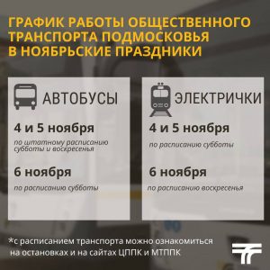 В предстоящие праздничные и выходные дни, с 4 по 6 ноября, изменится расписание общественного транспорта Подмосковья