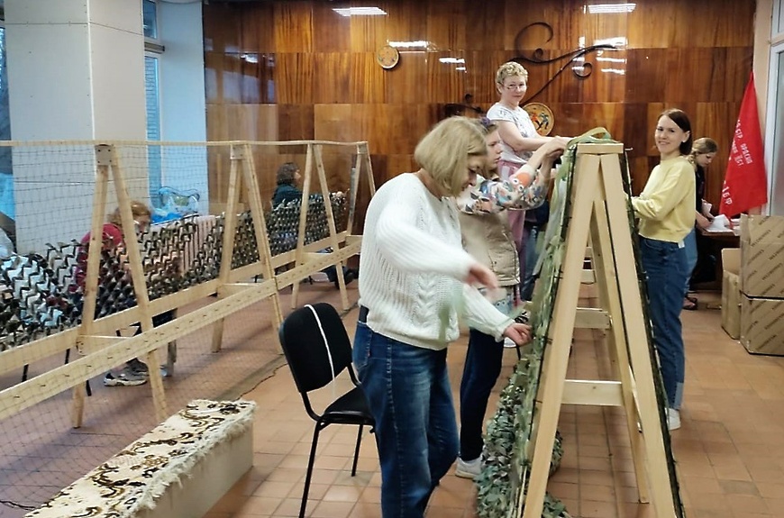 Пункт плетения камуфлирующих сеток был организован по инициативе пущинской группы поддержки мобилизованных и лично ее куратора - Анатолия Амелина. 19 марта волонтеры сплели первую маскировочную сеть, а сегодня счет готовых изделий идет на десятки.