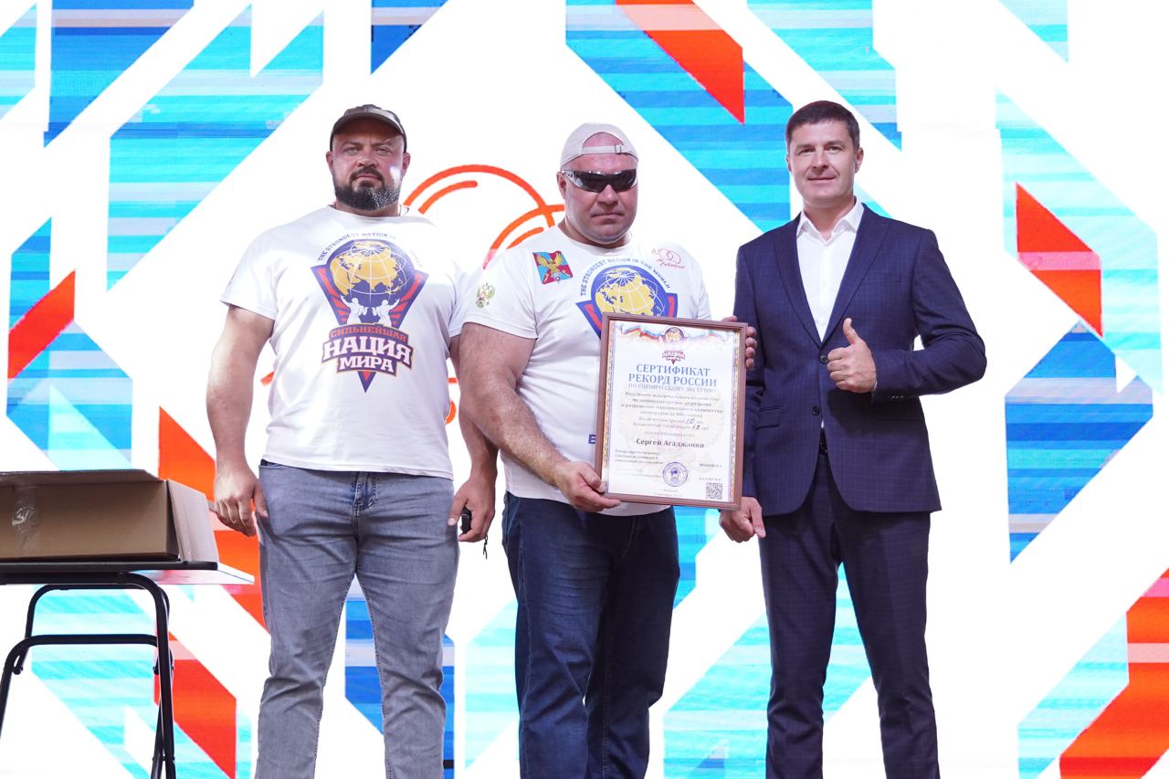 Глава городского округа Люберцы Владимир Волков поздравил атлета международного богатырского движения «Сильнейшая нация мира», многократного рекордсмена мира по буксировке многотонной техники и силовым номерам Сергея Агаджаняна по прозвищу «Русский Халк» с новым рекордом.