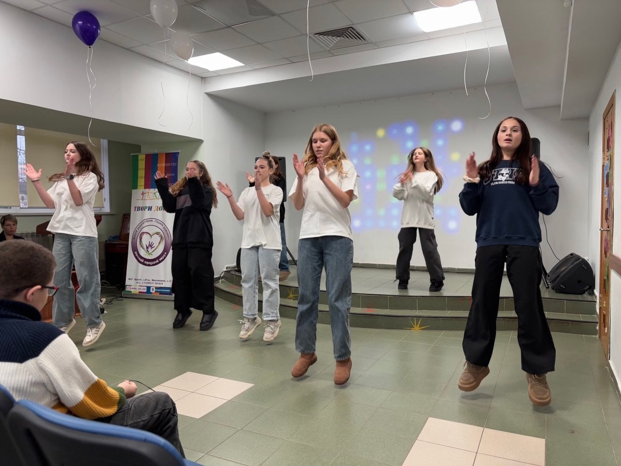 А старшие волонтеры станцевали на сцене центра флешмоб, который был подготовлен еще ко Дню молодежи.