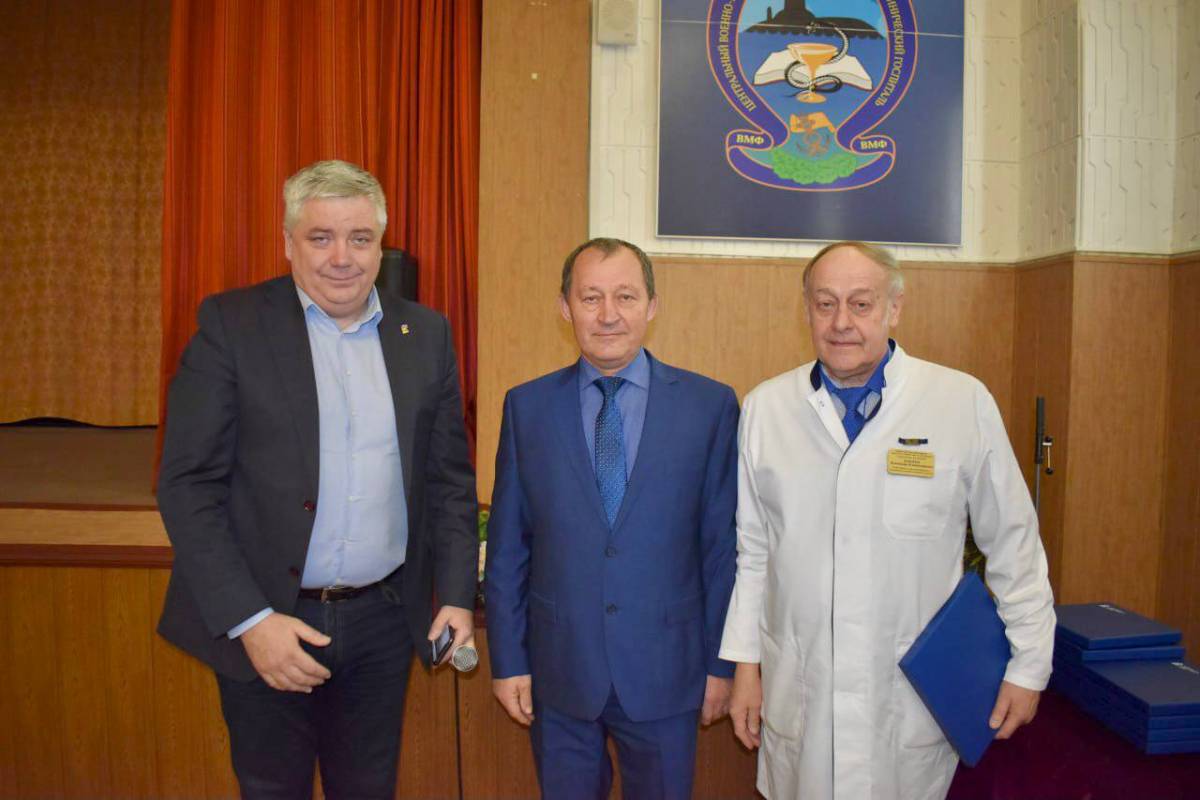 Тарас Ефимов, по поручению председателя Московской областной Думы Игоря Брынцалова, вручил знаки «За Труды» начальнику филиал №3 Главного военного клинического госпиталя имени академика Н.Н. Бурденко Сергею Попову и заместителю начальника филиала госпиталя по медицинской части Михаилу Козовому, а также памятные подарки от Московской областной думы 15 медикам.