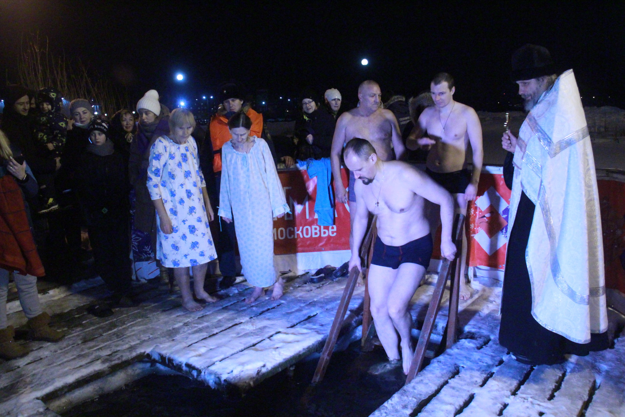 Все купели Клинского благочиния, где можно было окунуться в ледяную воду, освятили вечером и перед полуночью священники Клинского благочиния, при этом в традиционных многолюдных местах дежурили медики, полицейские и спасатели, а движение транспорта контролировали сотрудники ГИБДД.