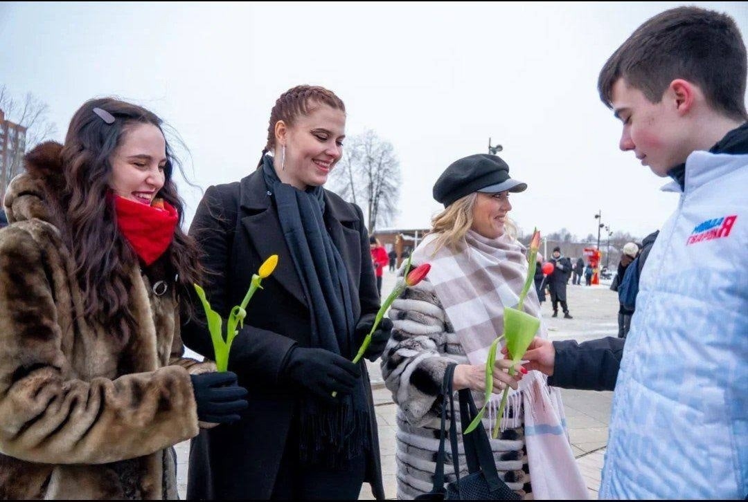 Активисты «Молодой Гвардии Единой России» и сторонники партии в парках городов Дрезна и Орехово-Зуево 8 марта вручили дамам букеты цветов и поздравительные открытки.